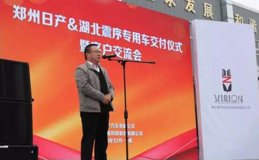 在交付儀式上,公司董事長(zhǎng)劉永生先生發(fā)表致辭,向來(lái)自鄭州日產(chǎn)專用車事業(yè)部的冉瑞利部長(zhǎng)表示了謝意,感謝他一直以來(lái)對(duì)湖北震序公司的支持與信賴;冉瑞利部長(zhǎng)也在隨后的發(fā)言中對(duì)湖北震序公司的設(shè)計(jì)研發(fā)理念與制造工藝給予了很高的評(píng)價(jià),并表示將繼續(xù)加強(qiáng)與湖北震序公司的緊密合作。
