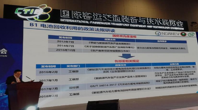 隨后,聯(lián)盟副秘書長(zhǎng)李剛發(fā)表主題演講,圍繞動(dòng)力蓄電池溯源工作政策背景以及動(dòng)力蓄電池溯源國(guó)家平臺(tái)建設(shè)方案進(jìn)行了介紹,深入詳細(xì)講解與廣大新能源汽車企業(yè)息息相關(guān)的電池溯源車載管理模塊業(yè)務(wù)流程,包括生產(chǎn)銷售、維修售后、電池退役、換電模式等業(yè)務(wù)環(huán)節(jié)的信息數(shù)據(jù)對(duì)接及交互流程。隨后,國(guó)家再制造汽車零部件產(chǎn)品質(zhì)量監(jiān)督檢驗(yàn)中心鄭勛主任就“汽車動(dòng)力電池梯次利用的探索與實(shí)踐”發(fā)表主題演講,從理論和實(shí)踐兩個(gè)層面,為整個(gè)新能源汽車行業(yè)內(nèi)電池溯源工作給予了指導(dǎo)。接著,四名企業(yè)代表,比亞迪電池事業(yè)群第二事業(yè)部總監(jiān)曹文玉、北京海博思創(chuàng)科技有限公司副總經(jīng)理錢昊、杭州高特電子設(shè)備股份有限公司總經(jīng)理徐劍虹以及上海煦達(dá)新能源科技有限公司技術(shù)總監(jiān)張哺針對(duì)“動(dòng)力電池回收利用”、“動(dòng)力電池全生命周期價(jià)值管理”、“滿足動(dòng)力電池全生命周期管理和利用的智能分布式BMS”和“動(dòng)力電池梯次利用技術(shù)及儲(chǔ)能系統(tǒng)運(yùn)行分析”四大主題發(fā)表了演講,從企業(yè)角度,對(duì)新能源汽車動(dòng)力電池溯源管理工作表達(dá)了見解。