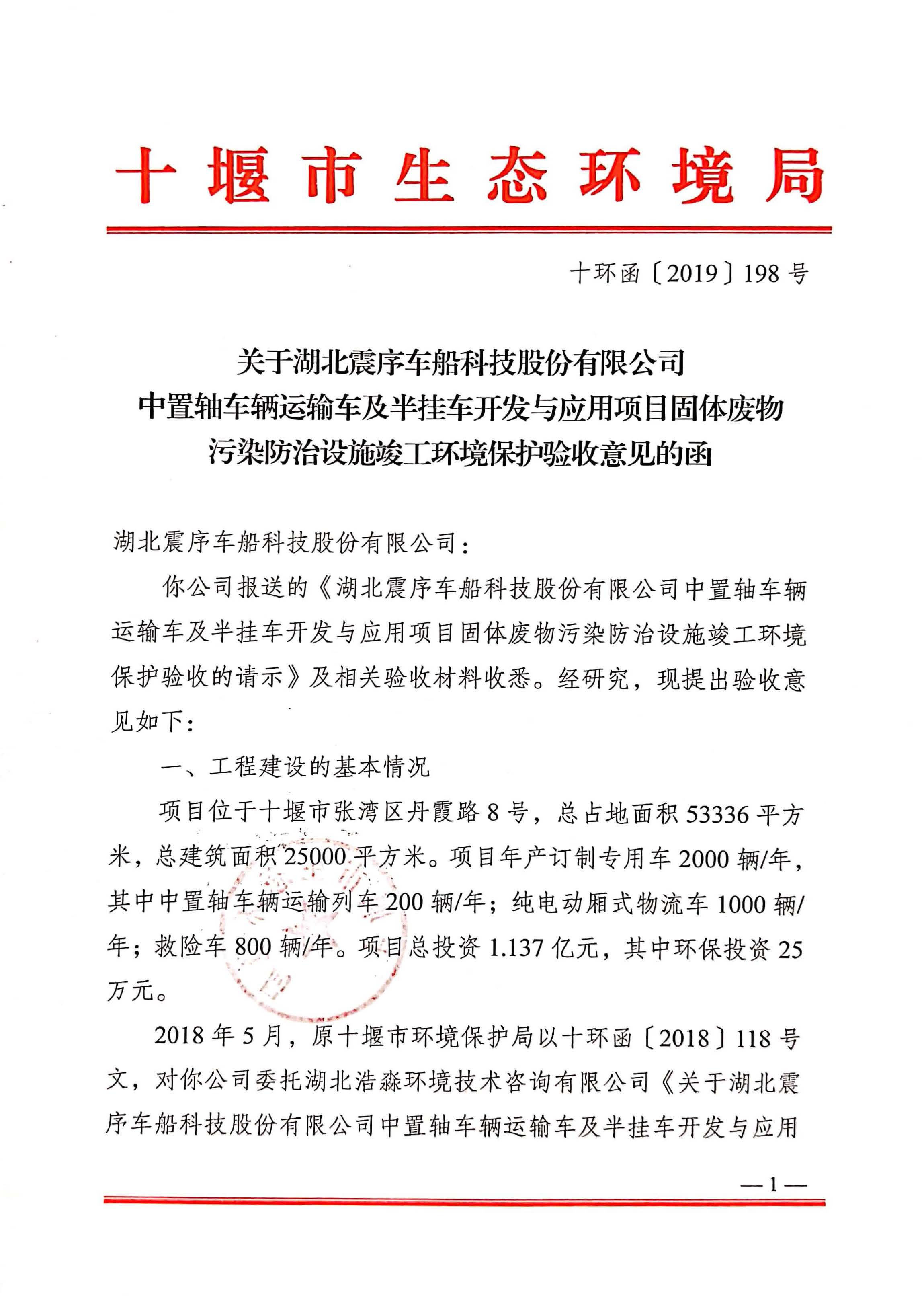 震序車船固體廢物污染防治設(shè)施竣工環(huán)境保護(hù)驗(yàn)收意見函